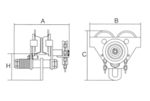 GCL系列單軌小車用途:廣泛地適用于工廠、礦山、碼頭、倉庫、建筑工地等,單軌小車用于安裝機器設備,吊運貨物的場合,單軌小車尤其適用于無電源地點的作業(yè)。