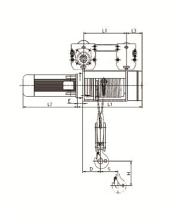 | 型號(hào) | 起重量(T) | 工作級(jí)別 | 滑輪倍率 | 起升速度(m/min) | 起升電機(jī)功率(kw) | L2(mm) | φmm | Amm | A0mm | Bmm | Hmin mm | L3 mm | S mm | |