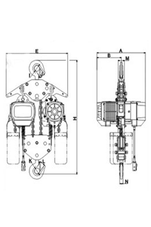 磅磁剎車:新設(shè)計(jì)的磁力產(chǎn)生器,其特性為產(chǎn)磁??稍陔娫辞袛嗟耐瑫r(shí)間剎車,保證吊重時(shí)剎車確保安全。極限開關(guān):吊上吊下都有極限開關(guān)裝置,使自動(dòng)停止,防止鏈條超出,確保安全。