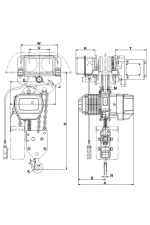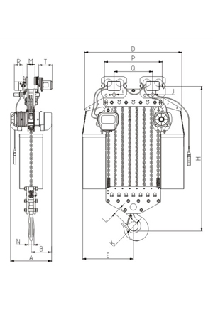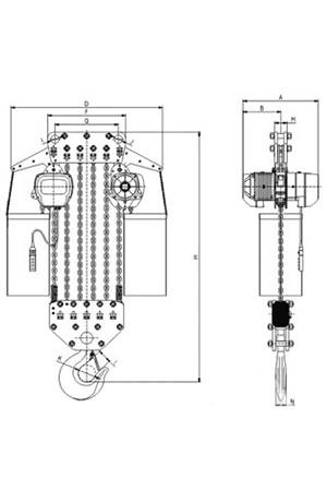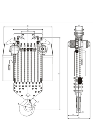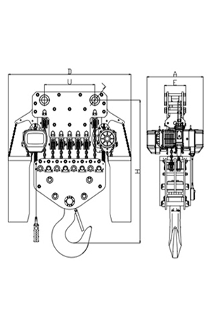 | 掛板式環(huán)鏈電動(dòng)葫蘆(7.5T-50T) 尺寸參考: | ||||||||